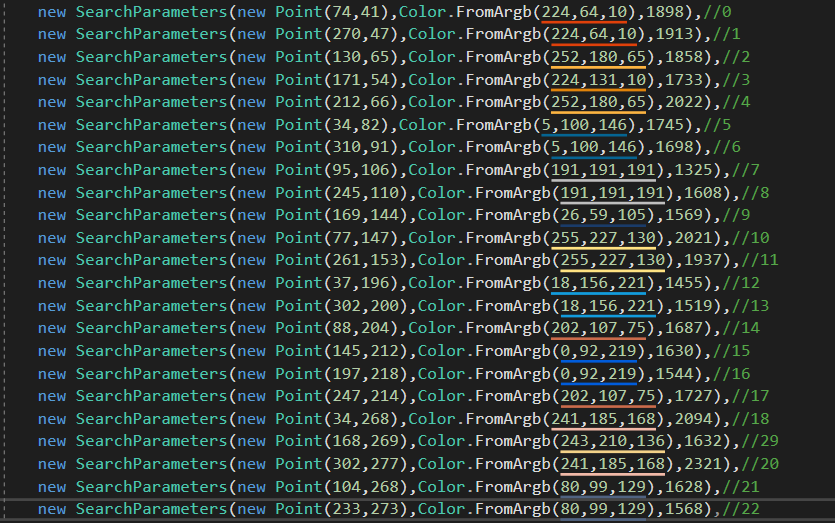 Each candy is having different amount of different colors. This makes possible to generate a color combination pattern for each candy type for each candy position. But since each candy type may have variations - we are creating a database which contains several patterns for each candy type.